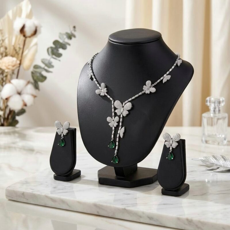 Xavi AD Butterfly & Green Teardrop Necklace Set