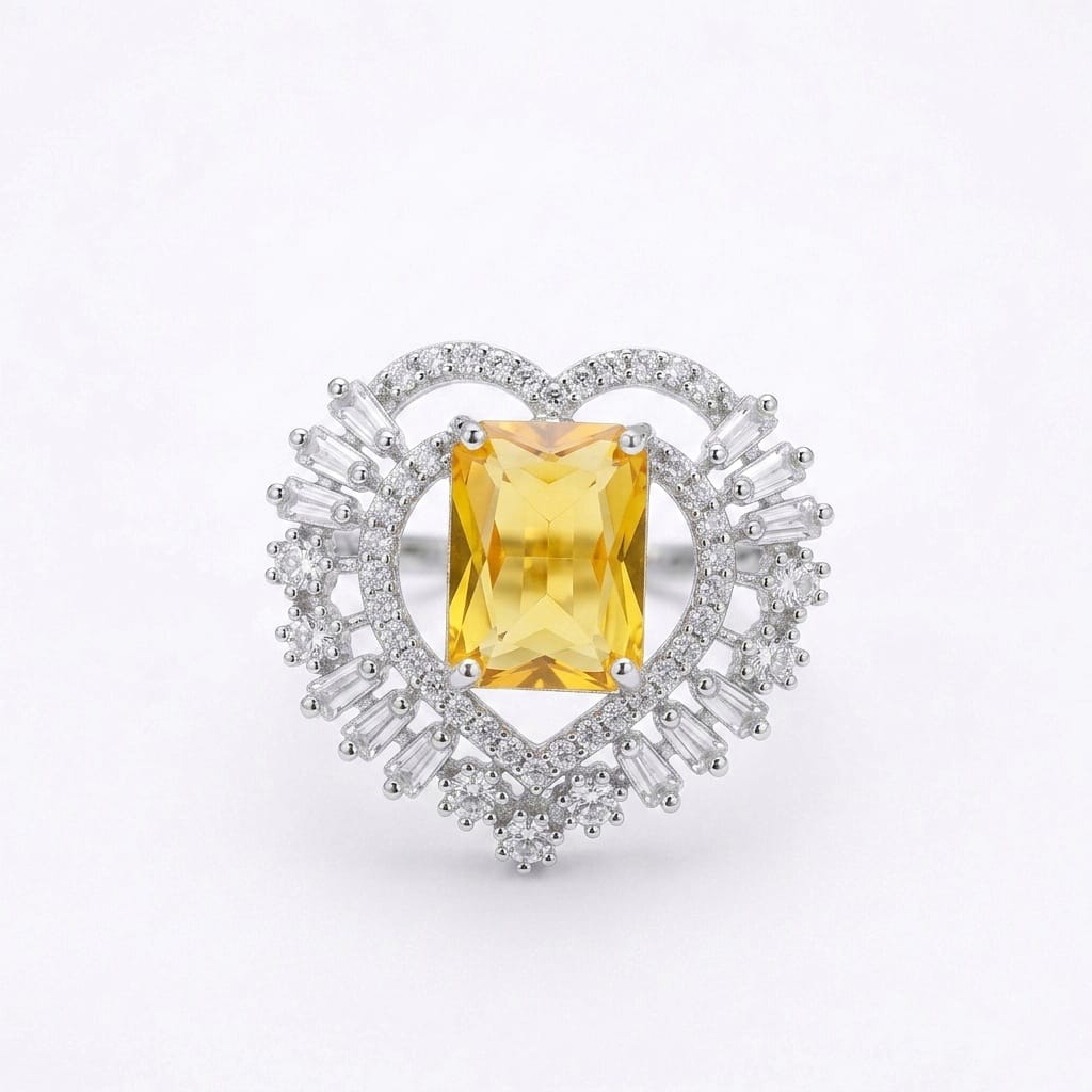 Premium Yellow Emerald-Cut & AD Heart Statement Ring