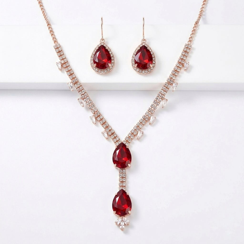 Rose Gold & Ruby Red Teardrop Y-Necklace Set