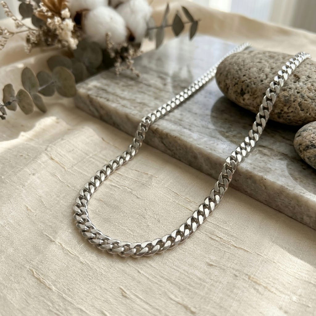 Timeless, versatile, and brilliantly polished. This essential everyday necklace features a classic flat Cuban/curb link design finished with a premium, anti-tarnish silver-tone coating. Durable and sleek, it delivers a sophisticated minimalist aesthetic perfect for solo wear or effortless layering.