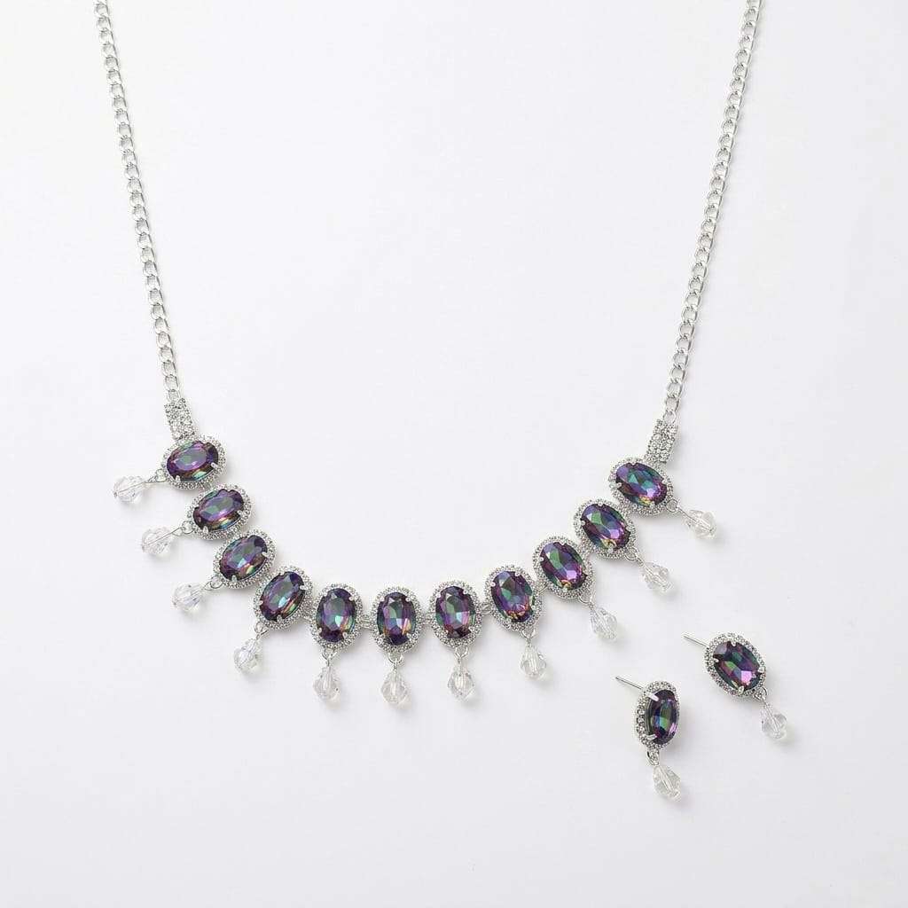 Be the first to review “Silver-Tone Mystic Amethyst Halo Necklace Set”