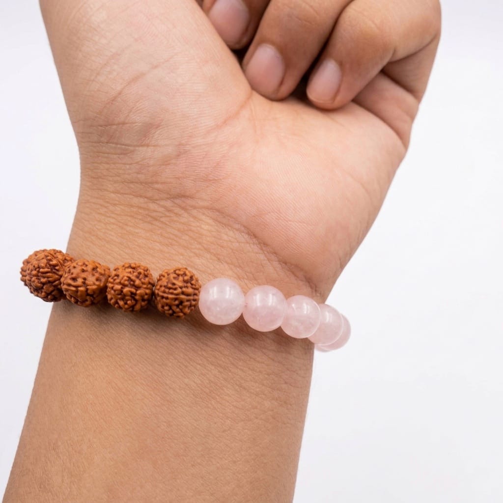 The Divine Harmony Rudraksha & Rose Quartz Band