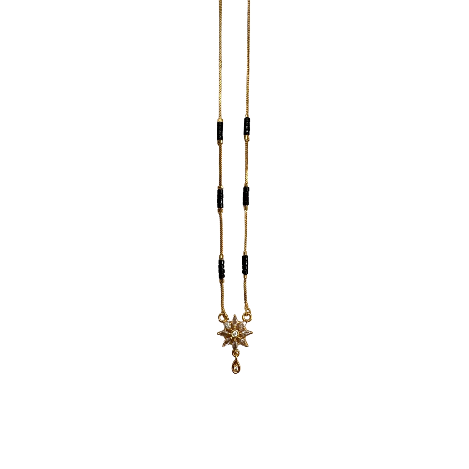 Xavi Jewellery Gold-Tone Floral Mangalsutra – Classic Black Bead Minimal Design